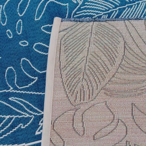 Ce tapis en polypropylène ajoute une touche de couleur sur votre terrasse ou dans votre salon. Son motif exotique blanc sur fond bleu canard ajoute de la fantaisie dans votre décoration. Le tressage met en valeur le dessin graphique à l’aspect grain de riz. Léger, il est facile à déplacer en fonction de la météo ou de vos envies. Confortable, il n’a besoin que de très peu d’entretien. Le polypropylène est une matière plastique, elle se nettoie facilement à l’eau.