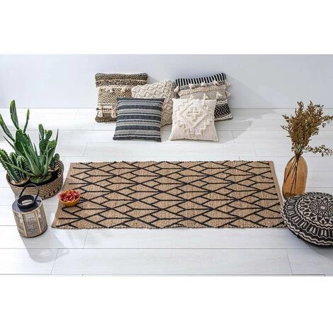Informations sur le tapis jute 70×140 géométrique noir :