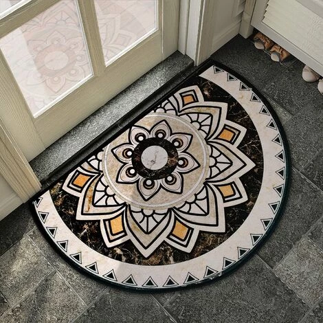 BAICCCF Tapis 61 Cm × 88 Cm Tapis D’entrée De Porte D’entrée Intérieur Bienvenue Tapis De Porte D’entrée Pour La Maison Tapis De Sol De Porte Arrière élégant Absorbant Tapis Antidérapant Lavable Marron Poils Bas Demi-rond – Motif #2
