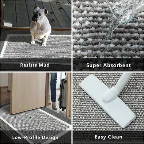 【ABSORBE L’HUMIDITÉ ET LA SALETÉ】Notre paillasson utilise la technologie textile double couche et est composé de polypropylène et de microfibre. Le duvet en microfibre a une absorption supérieure de l’humidité et le tissu en polypropylène peut aider à éliminer la saleté, la poussière, le gravier et la boue des chaussures. Nos tapis sont également disponibles dans des couleurs et des motifs plus élégants pour compléter n’importe quel décor, parfaits pour les maisons modernes. Avec un design à seuil bas, absolument pratique pour ouvrir ou fermer la porte, l’épaisseur parfaite vous permet de ne pas vous soucier du tapis qui vous empêchera de verrouiller la porte. ! Attention : ne placez le tapis que sur un sol propre et sec. L’eau sous le tapis peut le faire glisser. Gardez le bas du tapis au sec. Ce tapis de porte peut également être utilisé comme tapis de litière pour animaux de compagnie. La taille géante et les fibres douces constituent un espace agréable pour votre animal de compagnie pour jouer et manger. Nos paillassons sont non toxiques, inodores, parfaits pour les maisons avec des animaux domestiques (chiens ou chats) ou des enfants. . Pour un nettoyage en profondeur, lavé et séché en machine ! Ne vous inquiétez pas de la chute des fibres, la technologie de verrouillage des fibres garantit que ce tapis de porte sera lavable en machine plusieurs fois. Après plusieurs tests de lavage en machine, le paillasson est toujours aussi bon que neuf. Si vous rencontrez des problèmes avec le produit, vous pouvez nous contacter directement et nous vous fournirons un produit remplacé ou un remboursement complet !