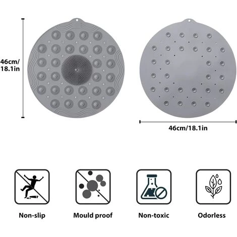 QUALITÉ SÉCURITAIRE ET DURABLE: La taille du tapis de douche rond en silicone est de 46×46 CM (18,1 x 18,1inch) en matériau non toxique et silicone. Ils comportent 28 ventouses antidérapantes qui aident à tenir en place sur des surfaces lisses et propres.