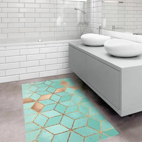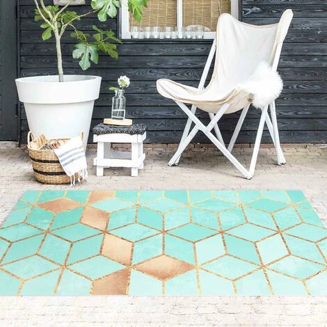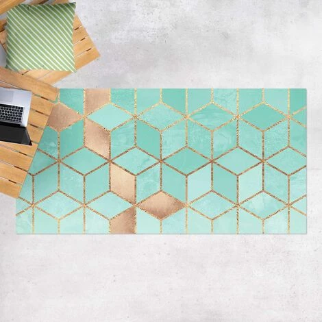 BILDERWELTEN Tapis En Vinyle – Elisabeth Fredriksson – Turquoise White Golden Geometry – Paysage 1:2 Dimension HxL: 80cm X 160cm