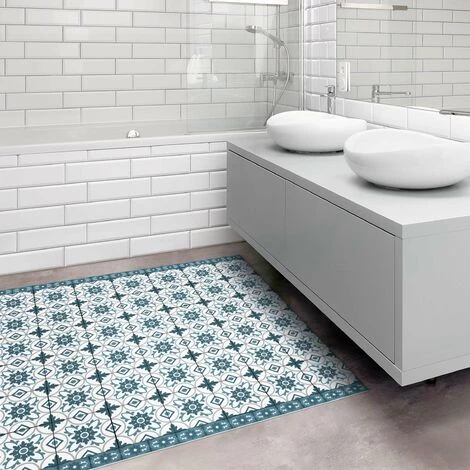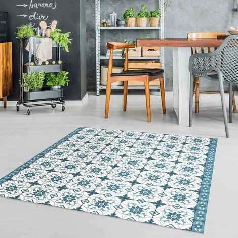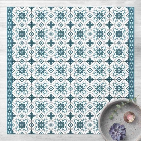 BILDERWELTEN Tapis En Vinyle – Geometrical Tile Mix Flower Blue Grey – Carré 1:1 Dimension HxL: 60cm X 60cm