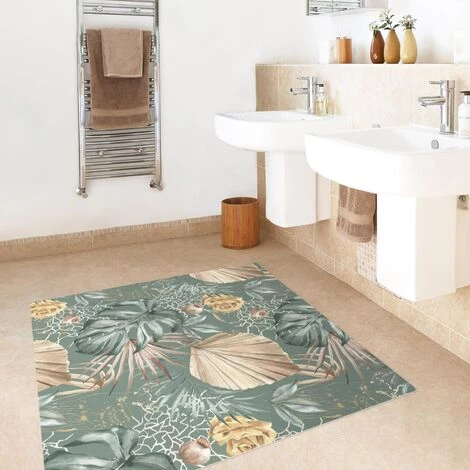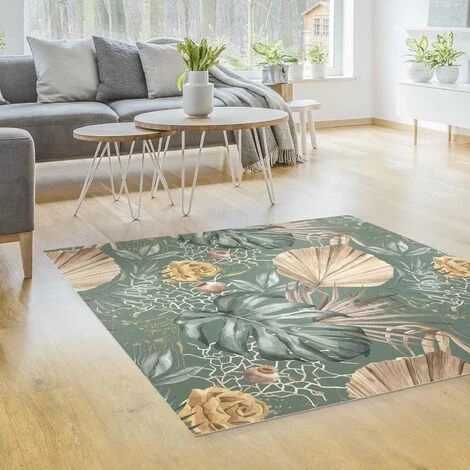 BILDERWELTEN Tapis En Vinyle – Large Leaves With Roses In Front Of Green – Carré 1:1 Dimension HxL: 80cm X 80cm