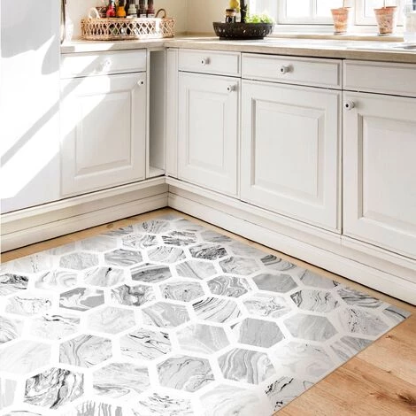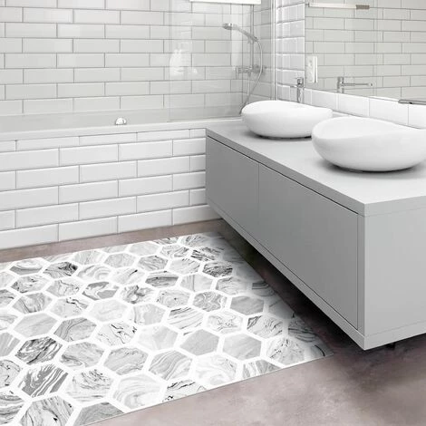 BILDERWELTEN Tapis En Vinyle – Marble Hexagons In Greyscales – Carré 1:1 Dimension HxL: 40cm X 40cm