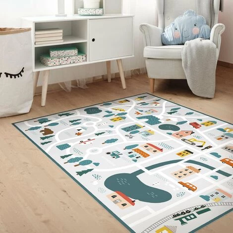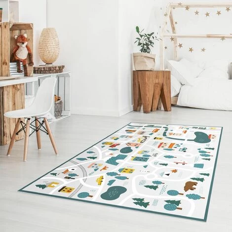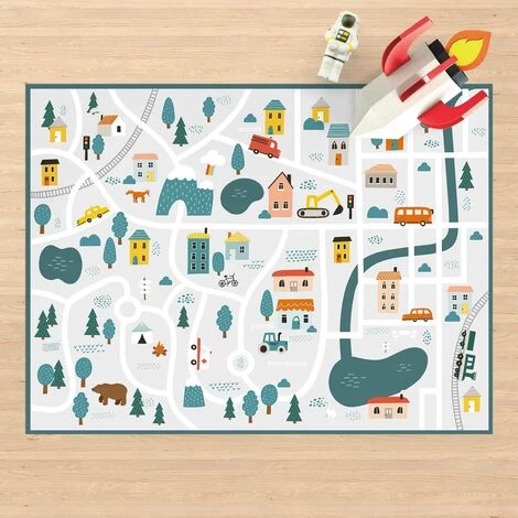 BILDERWELTEN Tapis En Vinyle – Playoom Mat Smalltown – From The City Into Nature – Paysage 3:4 Dimension HxL: 135cm X 180cm