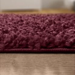 Paco Home Tapis Shaggy Tapis Salon Shaggy Poil Long Moderne Monochrome Rouge Bordeaux Ø 120 Cm Rond