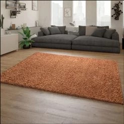 Paco Home Tapis Shaggy Tapis Salon Shaggy Poil Long Moderne Monochrome Beige Marron 120×170 Cm