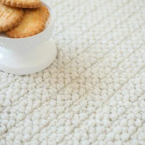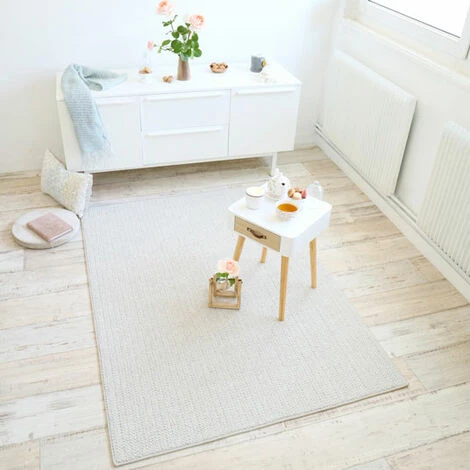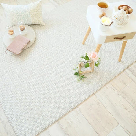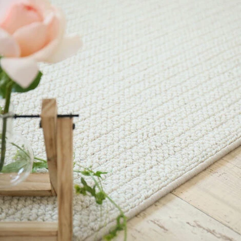 Tapis 20% laine / 80% polyester, tissé façon «effet tricot». Lignes discrètes et élégantes, couleur naturelle. Style classique chic et cosy, pour apporter confort et douceur dans votre salon ou votre chambre.