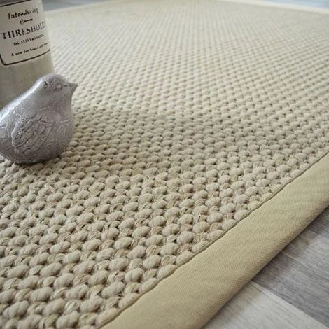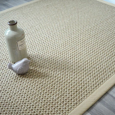 Tissage de laine et de sisal, tapis antistatique et antidérapant, avec une finition de ganse assortie à la couleur de votre tapis.
