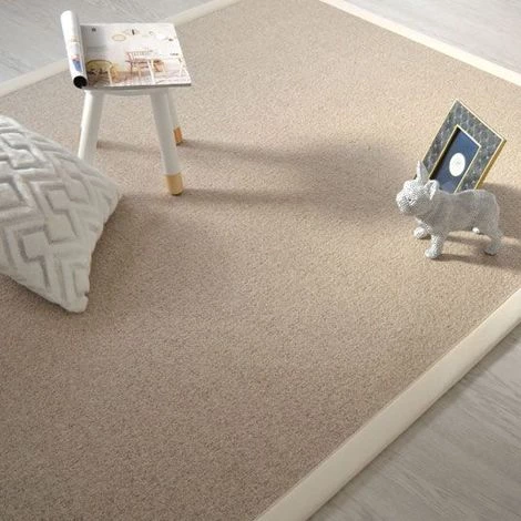 Un tapis 100% laine vierge naturelle petites boucles avec sa ganse coton assortie à la couleur du tapis. Fabriqué en France