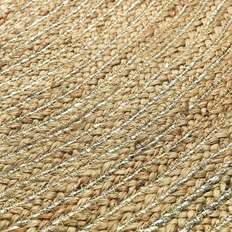 Décorez votre sol avec le tapis Sanda agrémenté de fils lurex en métal brillant + pompons en jute véritable. Adhérence parfaite à tous types de sols. Composition: Jute uni + lurex + pompons Taille: 120 cm de diamètre Pas de lavage – Pas de séchage en machine – Pas de repassage Produit de haute qualité