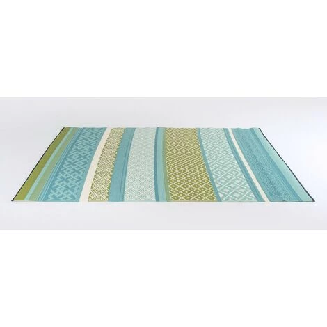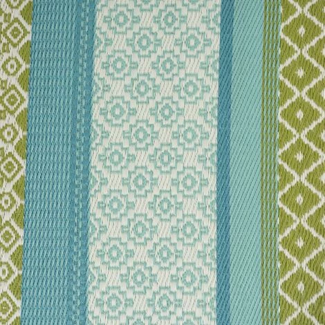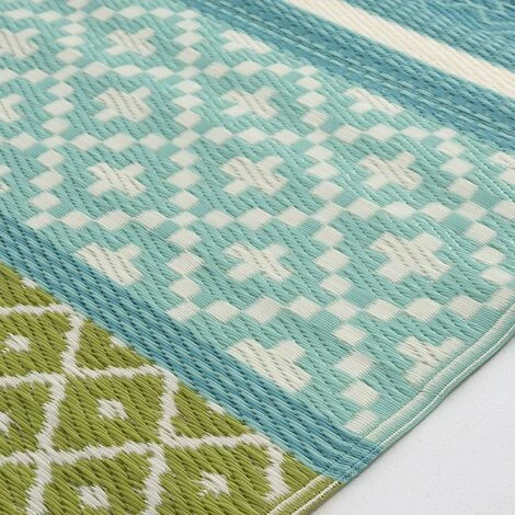 Tapis d’extérieur rectangulaire en couleur turquoise et verte.