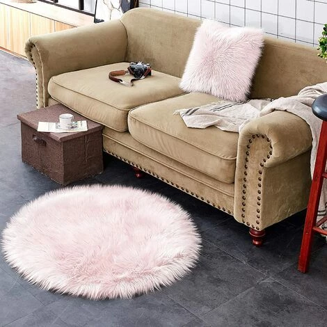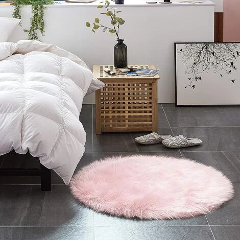 EINEMGELD Tapis En Fausse Fourrure D’agneau Et Peau De Mouton | Carpette Moelleuse Pour Chambre à Coucher, Salon, Crèche | Jet De Divan De Décoration Chaise | Rose – 90 Cm – Rond