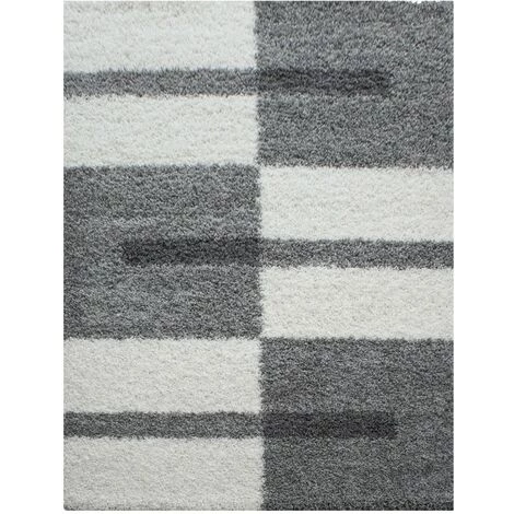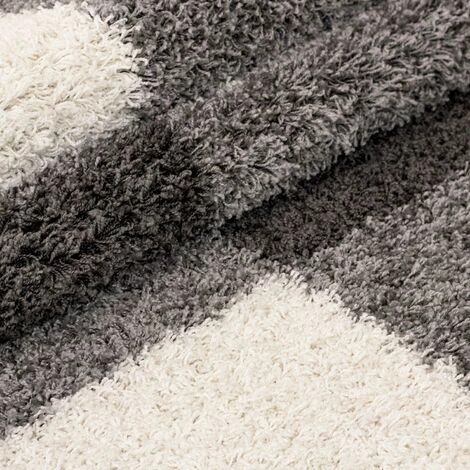 ROMA – Tapis Shaggy à motifs Traits – Gris clair et Crème