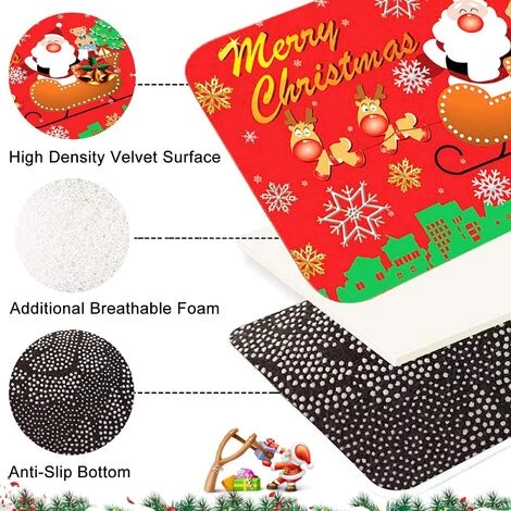 Toucher Confortable: Le tapis de Noël est très délicat et épaissi, ne se décolore pas et ne perd pas, ce qui procure une agréable sensation de confort. Toucher doux sur la surface, épais. Absorbe facilement l’eau et la poussière; bonne résistance au glissement.