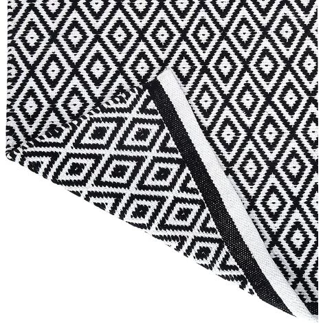 Ce tapis est réversible, avec une base noire et blanche pour s’adapter à tous les intérieurs modernes, scandinaves ou bohèmes.