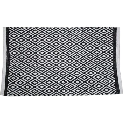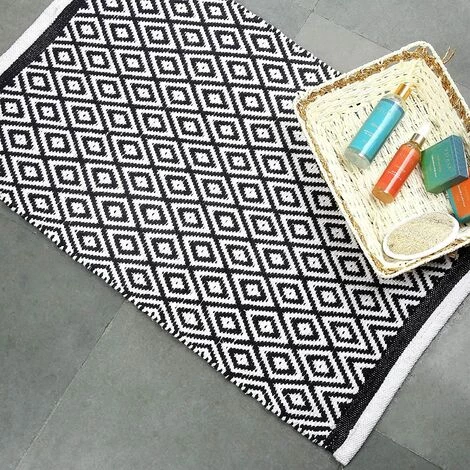 - Noir et blanc pièce décorative de l’art pour votre décor de salle boho, ce magnifique tapis intérieur mesure 86 x 53 cm. Les os de forme rectangulaire idéal pour chambres de différentes tailles.