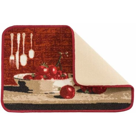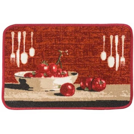 Tapis d’intérieur. Décor: motif tomates, tons rouges Disponible en plusieurs dimensions.