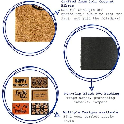 [Matériau de qualité] Le tapis de porte épais de qualité supérieure est conçu avec un matériau infroissable, facile à nettoyer et antistatique, parfait pour un usage domestique. [Le matériau épais le rend très durable, il ne convient donc pas pour les entrées de cour, les patios, les buanderies, etc., mais il peut aussi décorer les sols à la maison. [Forte absorption】 Antidérapant et résistant à l’usure, antidérapant efficace et durable. Il est très absorbant et sèche rapidement. C’est un tapis indispensable pour les familles.【Unique design】 Commémorez Halloween. Ce style vous aidera à célébrer et à commémorer Halloween pendant les vacances.