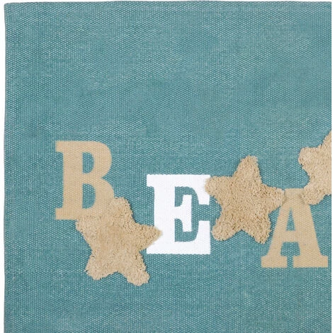 Ce tapis déco à l’esprit bord de mer apportera une note estivale et décorative à. votre intérieur. Rectangulaire en coloris céladon, on retrouve le mot « Beach » imprimé et centré avec quelques étoiles en relief. . D’autres articles assortis sont disponibles sur notre site afin d’harmoniser votre décoration d’intérieur. . Caractéristiques :. Dimensions : 60 x 90 cm. Coloris : céladon. Composition: 100% coton. . Vendu à l’unité.