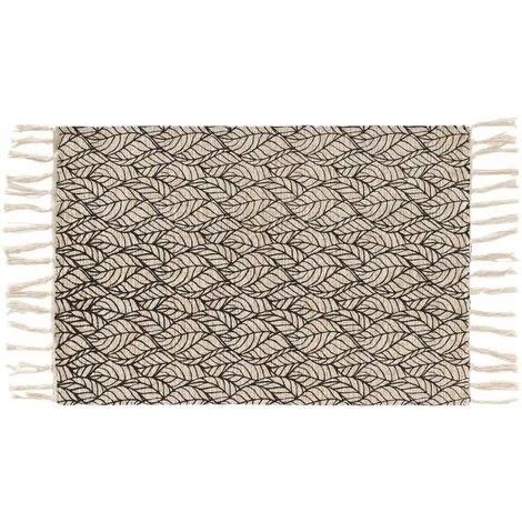 Misez sur ce tapis rectangulaire à franges et aux motifs de feuillages en filigrane en coloris. blanc ou noir qui s’intégrera dans n’importe quelle ambiance. Quelques franges en coloris naturel viendront finaliser ce tapis. Un mélange de matières entre le jute (15%) et le coton (85%) lui donnera un aspect souple. 2 dimensions vous sont proposées en fonction de vos besoins. D’autres articles assortis sont disponibles sur notre site.