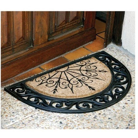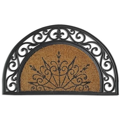Tapis grattant ID MAT Coral Combi Demi-lune en fibres de coco naturelles ou blanchies dans un cadre en caoutchouc.