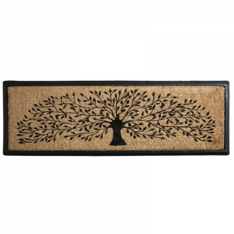 Paillasson en coco, envers et bords latexés, motif arbre.Matière : coco