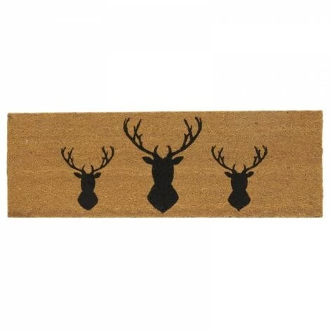 Paillasson en coco imprimé 3 cerfs. Envers latexé.Matière : coco