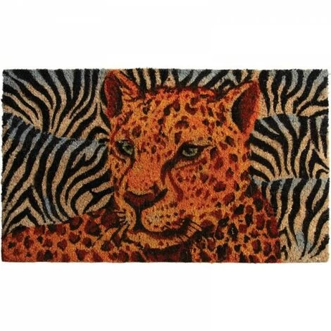 Paillasson en coco, envers latexé, motif panthère.Matière : coco