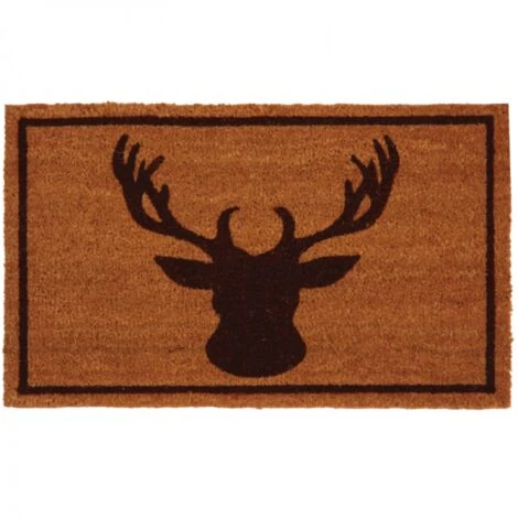 Paillasson en coco, motif tête de cerf. Envers latexé.Matière : coco
