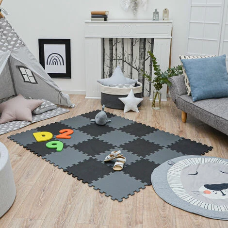 Le puzzle en mousse d’environ 1 cm d’épaisseur est très isolant – idéal pour jouer sur des sols froids et durs.