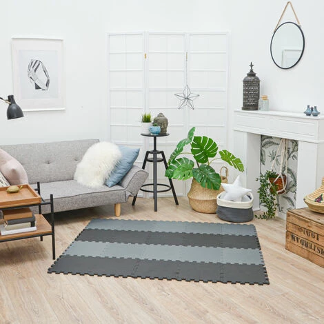Le puzzle XL protège la moquette de la saleté et des taches, les tapis de sol sont adaptés à la peau et lavables.