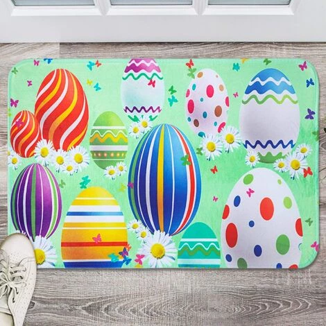 Décoration de Joyeuses Pâques: le tapis de porte printanier est imprimé d’oeufs et de fleurs colorés, vifs et mignons, pleins d’une forte ambiance festive; Vous et votre famille adorerez ce paillasson de Pâques