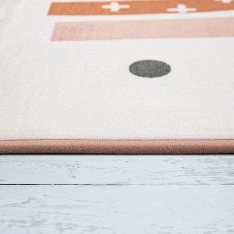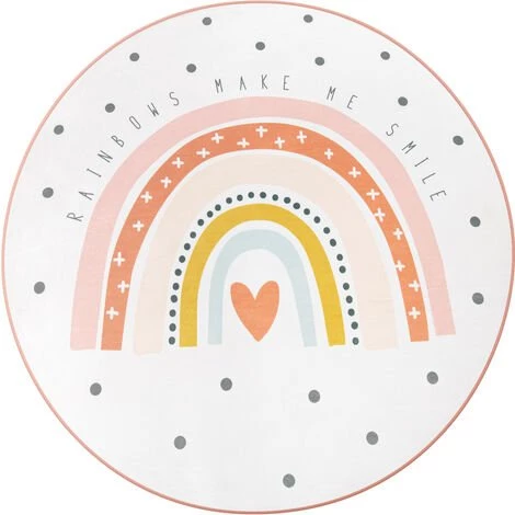 Paco Home Tapis Chambre Enfant Tapis De Jeux Tapis Bébé Arc-En-Ciel Cœur Blanc Cassé Rose 80 Cm Rond