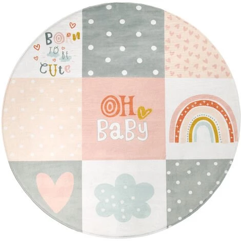 Paco Home Tapis Chambre Enfant Tapis De Jeux Tapis Bébé Losanges Gris Rose Blanc 80 Cm Rond