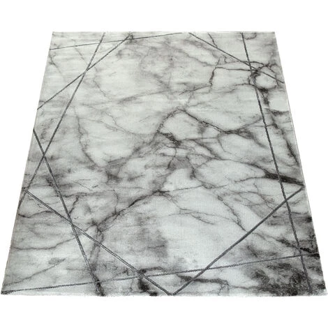 Paco Home Tapis De Salon Gris Argent 3-D-Motif Argent Marbre Lignes Design Poil Ras Robuste 80×150 Cm