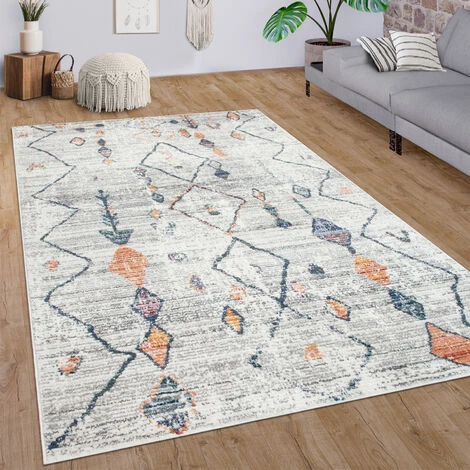 Paco Home Tapis De Salon Poils Ras Motif Diamant 3D Ethnique Boho Moderne Crème Coloré 80×150 Cm
