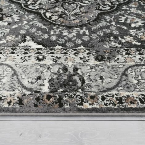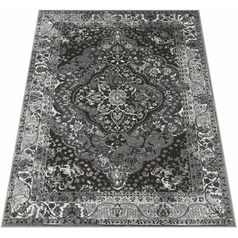 Paco Home Tapis De Salon Poils Ras Oriental Fleuri Avec Bordure Moderne Noir 80×150 Cm