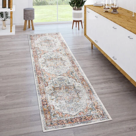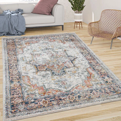 Paco Home Tapis De Salon Poils Ras Vintage Motif Orient Ornements Bordure Beige Bleu 60×100 Cm