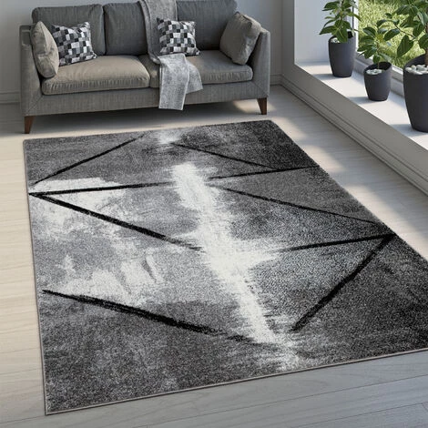 Paco Home Tapis De Salon Tapis Vintage Poils Ras Motif Abstrait Géométrique Gris Noir 80×150 Cm