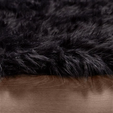 Paco Home Tapis Fausse Fourrure Coussin Cœur Rond Différentes Formes, Noir 30 Cm Rond