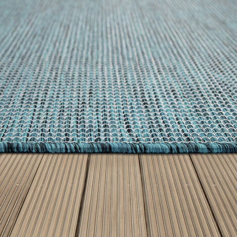 Paco Home Tapis Intérieur & Extérieur Pour Salon Balcon Terrasse Tissé À Plat Bleu Pétrole 80×150 Cm