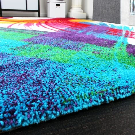 Tapis Moderne Multicouleur Splash Brossé Crème Vert Bleu Rouge Jaune