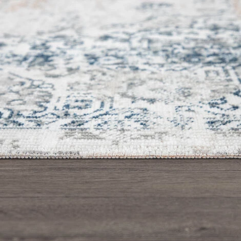 Ces élégants tapis fantaisie séduiront tous les adeptes du shabby chic grâce au superbe contraste entre les motifs floraux filigranes et un aspect usé brut. Le joli motif bleu plonge votre salon dans une atmosphère orientale et vous transporte dans des pays exotiques. Le romantisme oriental transforme votre espace de vie en havre de paix chaleureux, où vous pouvez échapper à la monotonie du quotidien et au stress lié au travail. L’aspect usé brut légèrement délavé apporte une petite touche d’élégance subtile à ces superbes tapis de style bohème ! Pour que vous puissiez profiter en toute tranquillité de votre oasis de bien-être idyllique, nous utilisons uniquement des matières certifiées non polluantes selon STANDARD 100 by OEKO-TEX® pour fabriquer ces tapis. En plus d’être particulièrement esthétiques, ces tissages plats polyvalents sont faciles à nettoyer et quasiment indestructibles grâce à leur surface en polypropylène. N’hésitez pas à placer ces tapis tout terrain dans des espaces très fréquentés comme le couloir ou le salon !