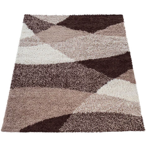 Paco Home Tapis Shaggy Longues Mèches Hautes Motifs Brun Beige Crème 70×140 Cm