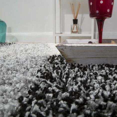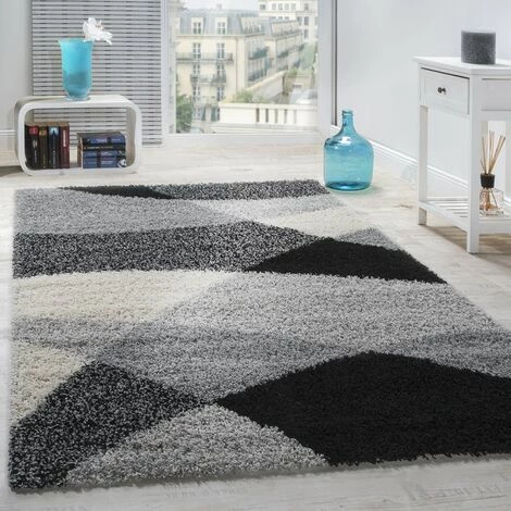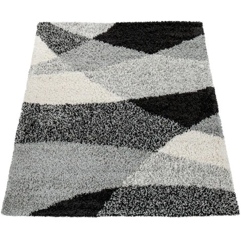 Paco Home Tapis Shaggy Longues Mèches Hautes Motifs Gris Noir Blanc 70×250 Cm