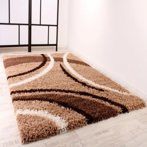 Paco Home Tapis Shaggy Longues Mèches Hautes Motifs Marron Beige Crème 70×140 Cm
