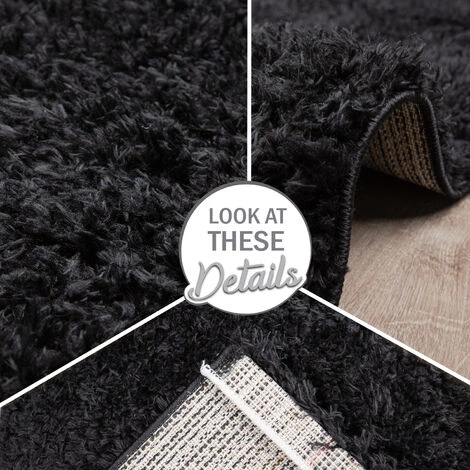 Paco Home Tapis Shaggy Tapis De Salon Poil Long Doux Moderne Motif Monochrome Noir 60×100 Cm