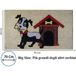 Baroni Home Paillasson D’extérieur En Coco Avec Base En PVC, Peint à La Main, Motif Chien Avec Os Et Niche, 70 X 40 X 2 Cm. Facile à Laver Et Ultra Résistant